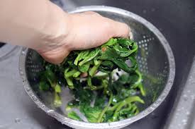 시금치는 뿌리 부분에 흙이 많이 묻어 있기 때문에 흐르는 물에서 여러 번 흔들어 깨끗하게 씻어야 합니다. 특히 뿌리 사이사이를 벌려 씻어야 흙이 남지 않습니다.
